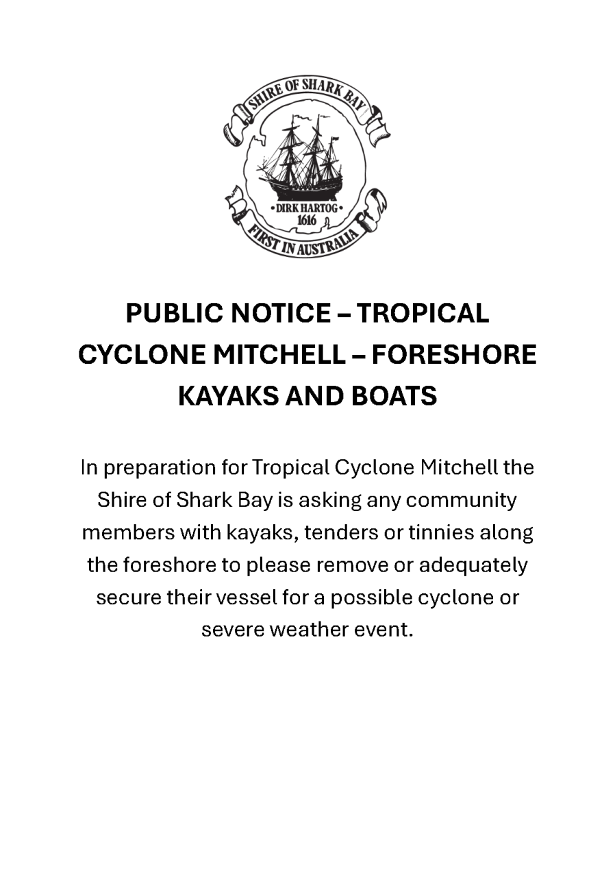 65 Knight Terrace Denham WA 6537 Email: admin@sharkbay.wa.gov.au Telephone: 08 9948 1218 Office hours 8:30AM – 4:00PM
