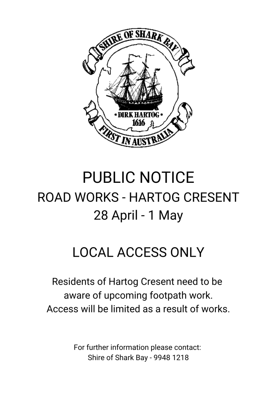 65 Knight Terrace Denham WA 6537 Email: admin@sharkbay.wa.gov.au Telephone: 08 9948 1218 Office hours 8:30AM – 4:00PM