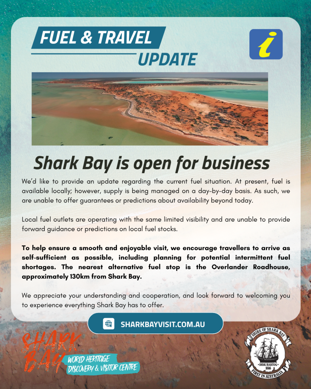 We would like to acknowledge the Malgana Peoples as the traditional custodians of the land and sea in and around the Shire of Shark Bay. We pay our respects to their Elders past, present and emerging.